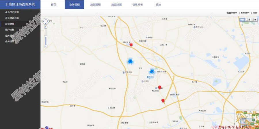 北京愛(ài)特拉斯信息科技有限公司,針對管理部門(mén)、園區企業(yè)、社會(huì )公眾三個(gè)不同的角色,開(kāi)發(fā)了三套頁(yè)面: