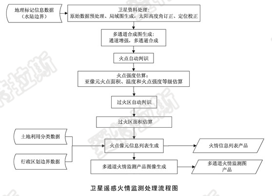 遙感火點(diǎn)識別的基本原理就是運用遙感衛星對地球表面進(jìn)行掃描,通過(guò)衛星地面站把掃描信息接收下來(lái),再利用計算機對這些信息進(jìn)行處理,識別出紅外熱點(diǎn),結合地理信息系統對熱點(diǎn)進(jìn)行定位,根據植被信息對熱點(diǎn)類(lèi)型進(jìn)行初步判讀,從而實(shí)現對森林火災的衛星監控。