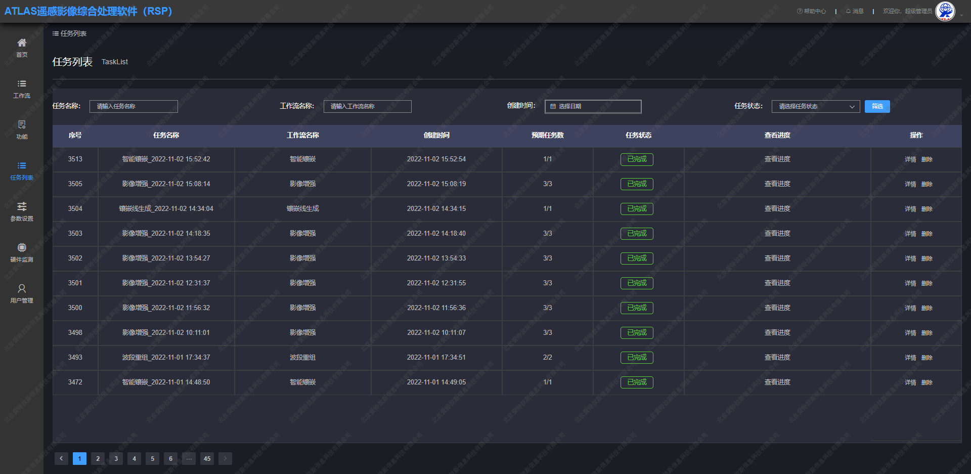 面對國內自然資源衛星頻頻發(fā)射,大批量遙感數據的快速處理成為各家不得不面對的問(wèn)題,公司本次發(fā)布的ATLAS-RSP2.0正式版主要針對性解決遙感大數據快速處理問(wèn)題,以及多源、多載荷(光學(xué)、雷達、高光譜)的遙感圖像處理問(wèn)題,ATLAS-RSP2.0正式版在處理精度、效率、質(zhì)量等方面都有大幅提升,新架構帶來(lái)了處理任務(wù)的可視化,既可實(shí)現C/S涉密環(huán)境下的離線(xiàn)部署及處理,也可實(shí)現B/S模式下的在線(xiàn)部署及處理;即可實(shí)現單機單工作站單服務(wù)器處理,也可實(shí)現多機多核多集群并行處理;同步上線(xiàn)了“硬件監控”和“幫助中心”,提高用戶(hù)的使用體驗。