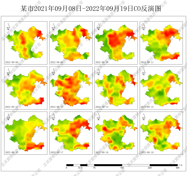 某地2022.09.08-2022.09.19 PM2.5、PM10、SO2、NO2、CO、O3反演圖